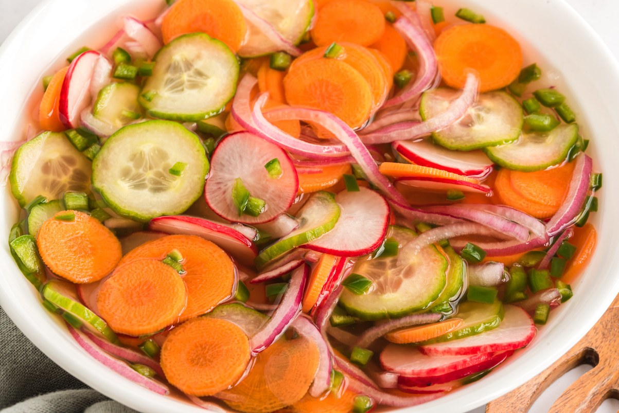 Finally, a tasty and crunchy way to elevate just about any meal is by adding pickled veggies. Pickling, especially our Vietnamese-Inspired version, is simple, yummy, and a great way to expand veggies’ shelf life!