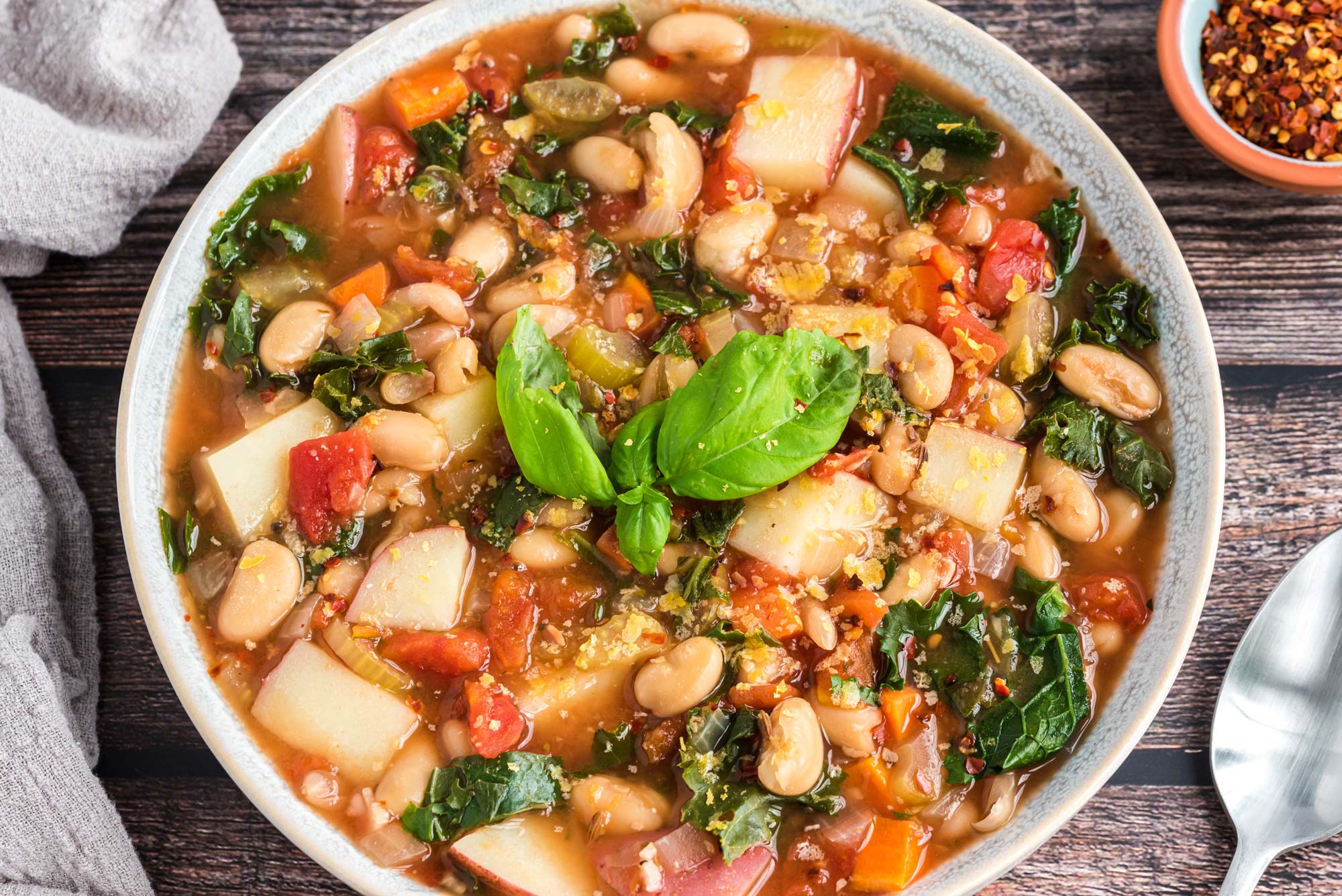 Transfer the soup into bowls and sprinkle with nutritional yeast, basil, and crushed red pepper for additional yumminess.