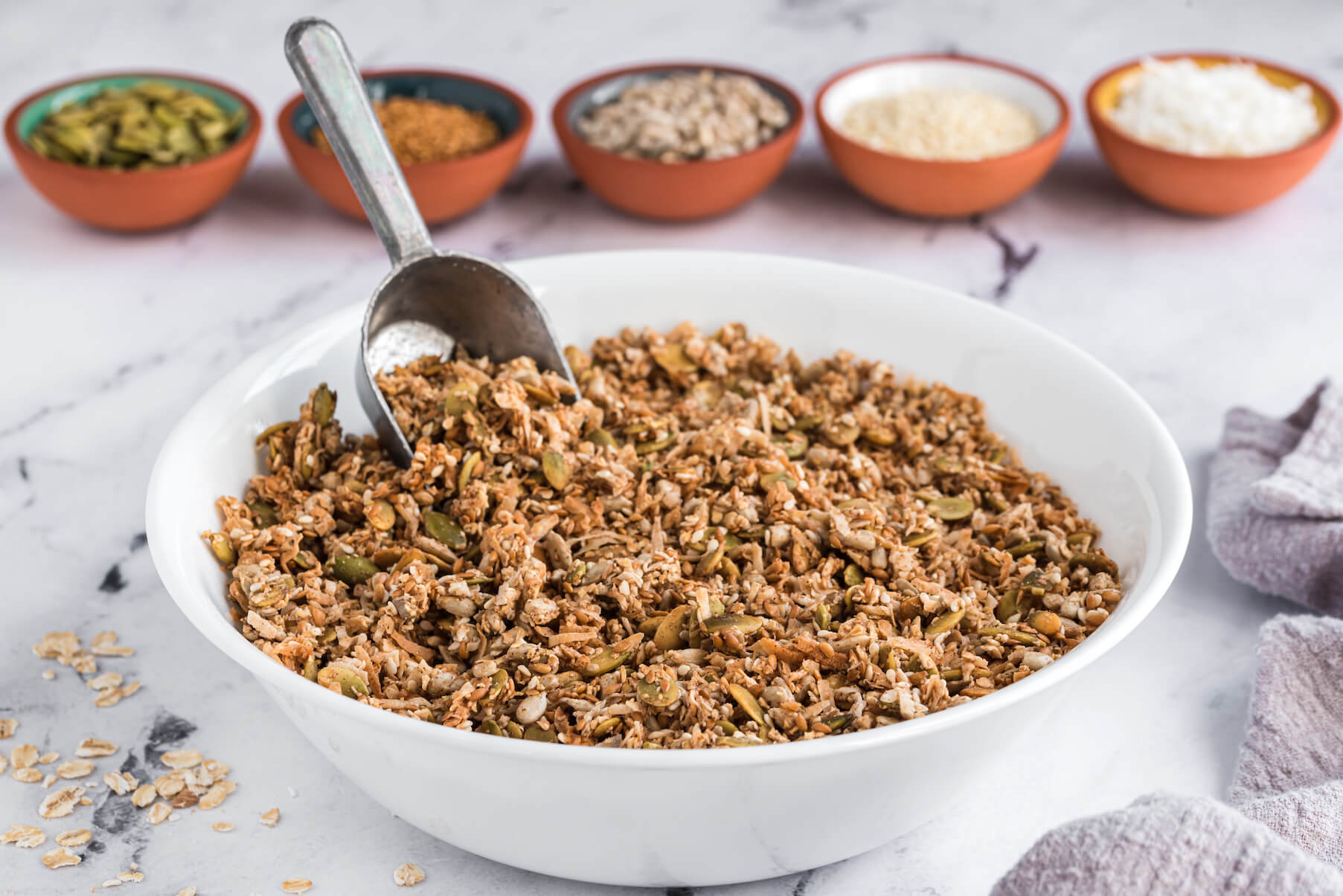 The ingredients in this recipe happen to be some of our favorite nuts and seeds. We encourage you, however, to claim complete granola autonomy and creativity. Do you like a few extra pecans in your granola? What about almonds? Dislike walnuts altogether? Creating your own nut and seed blend that suits you best makes putting this granola recipe together fun — and results in a cereal you can feel proud (and excited) to eat!