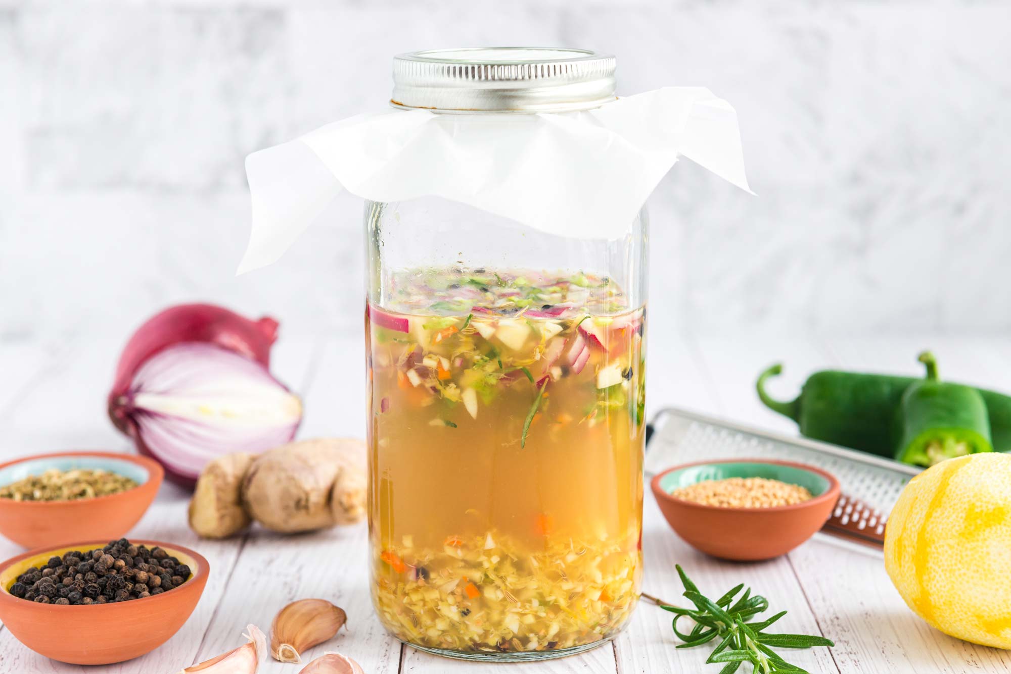 Pour the apple cider vinegar over the ingredients until all of the ingredients are completely submerged.
