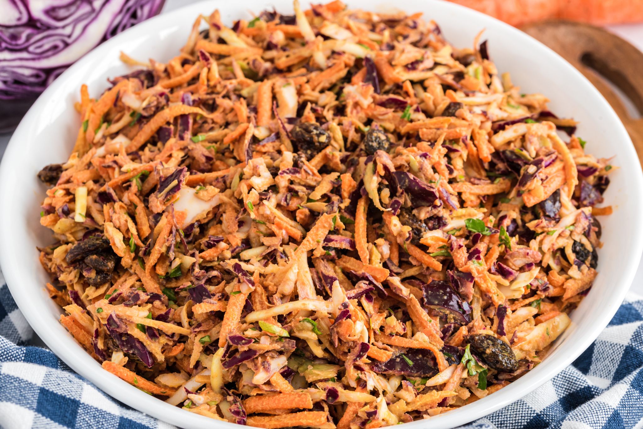 Turmeric Tahini Slaw is a simple yet creative way to enjoy the healing benefits of turmeric, whether on its own as a crunchy and craveable salad, or as a topping for tacos, burgers, burritos, or grain bowls. There’s plenty of fiber, a cornucopia of colorful veggies, and powerful anti-inflammatory benefits from turmeric — what’s not to love?