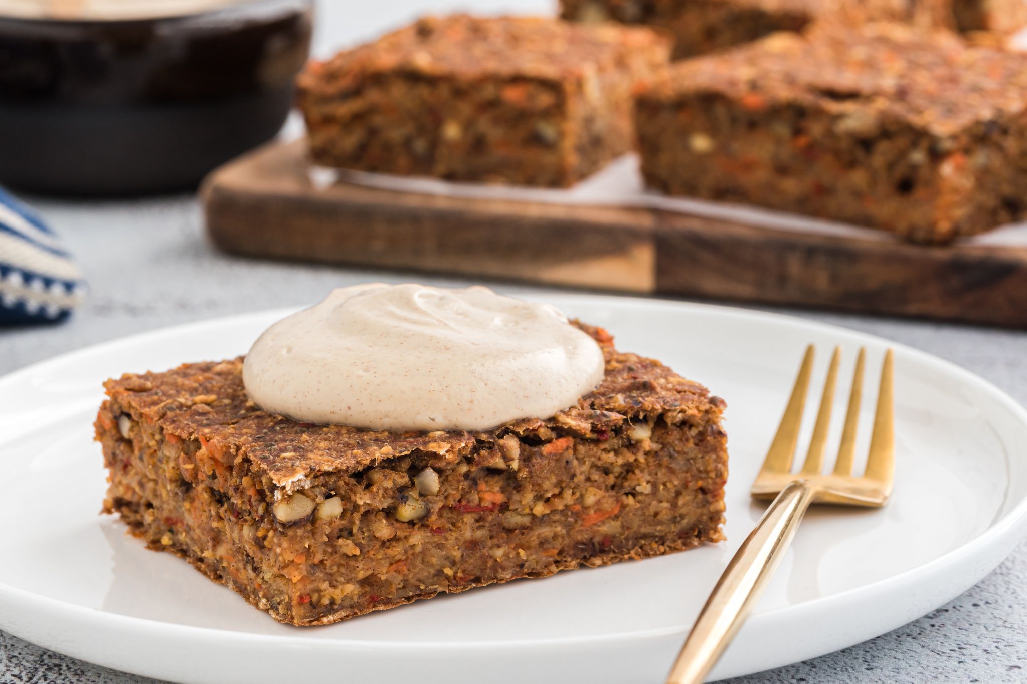 Fresh ginger and turmeric bring this wholesome carrot cake to life. These two spices are anti-inflammatory superstars with their phytonutrients gingerol and curcumin, respectively. Heat activates the curcumin in turmeric. But you also have the option of adding a bit of black pepper to the dry ingredients, which has been shown to be most effective in turning on curcumin’s magical powers. Enjoy a slice of this carrot cake with your favorite plant-based milk, and let dessert nourish you!