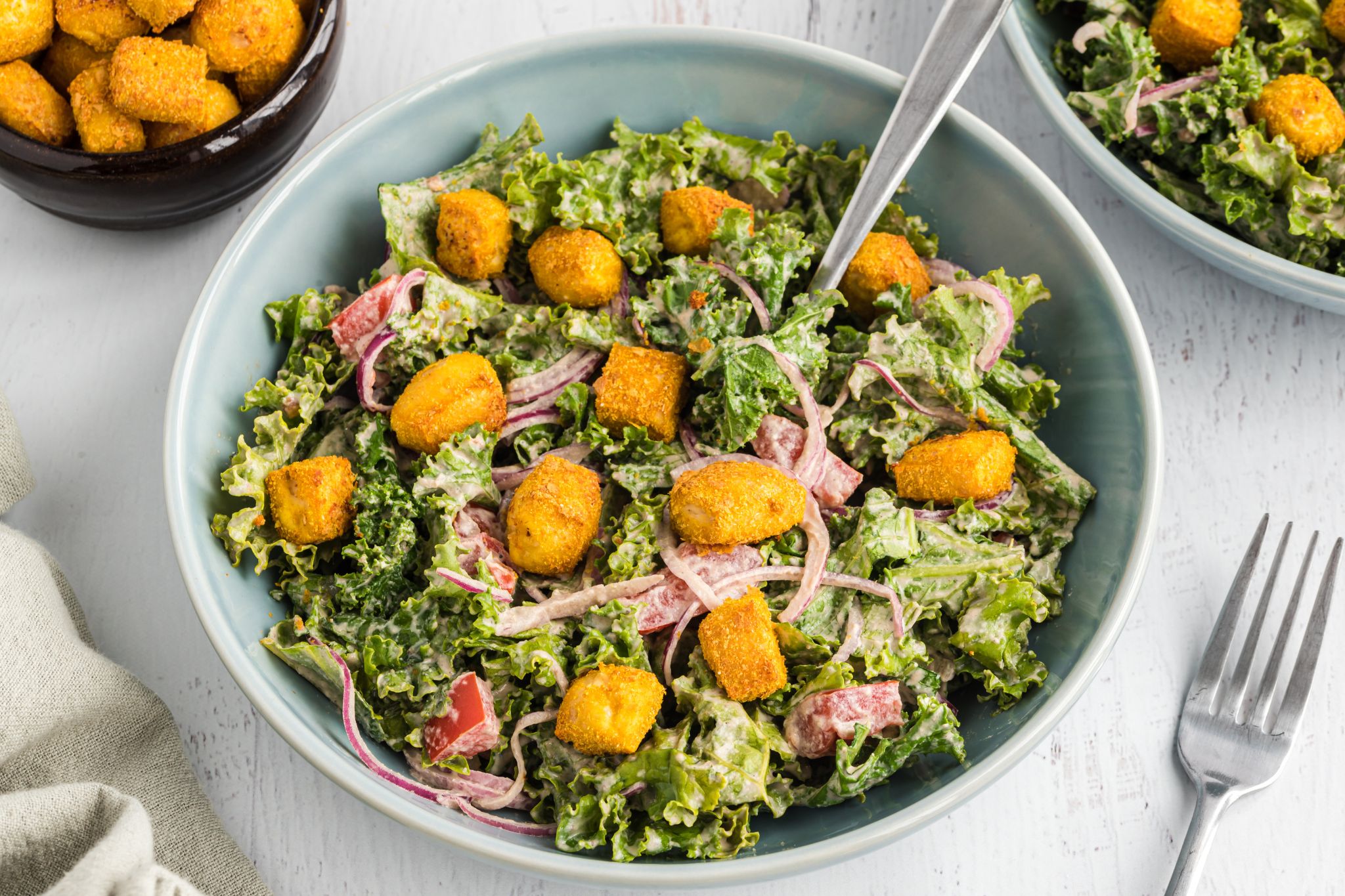 2. Kale Caesar with Tofu Croutons