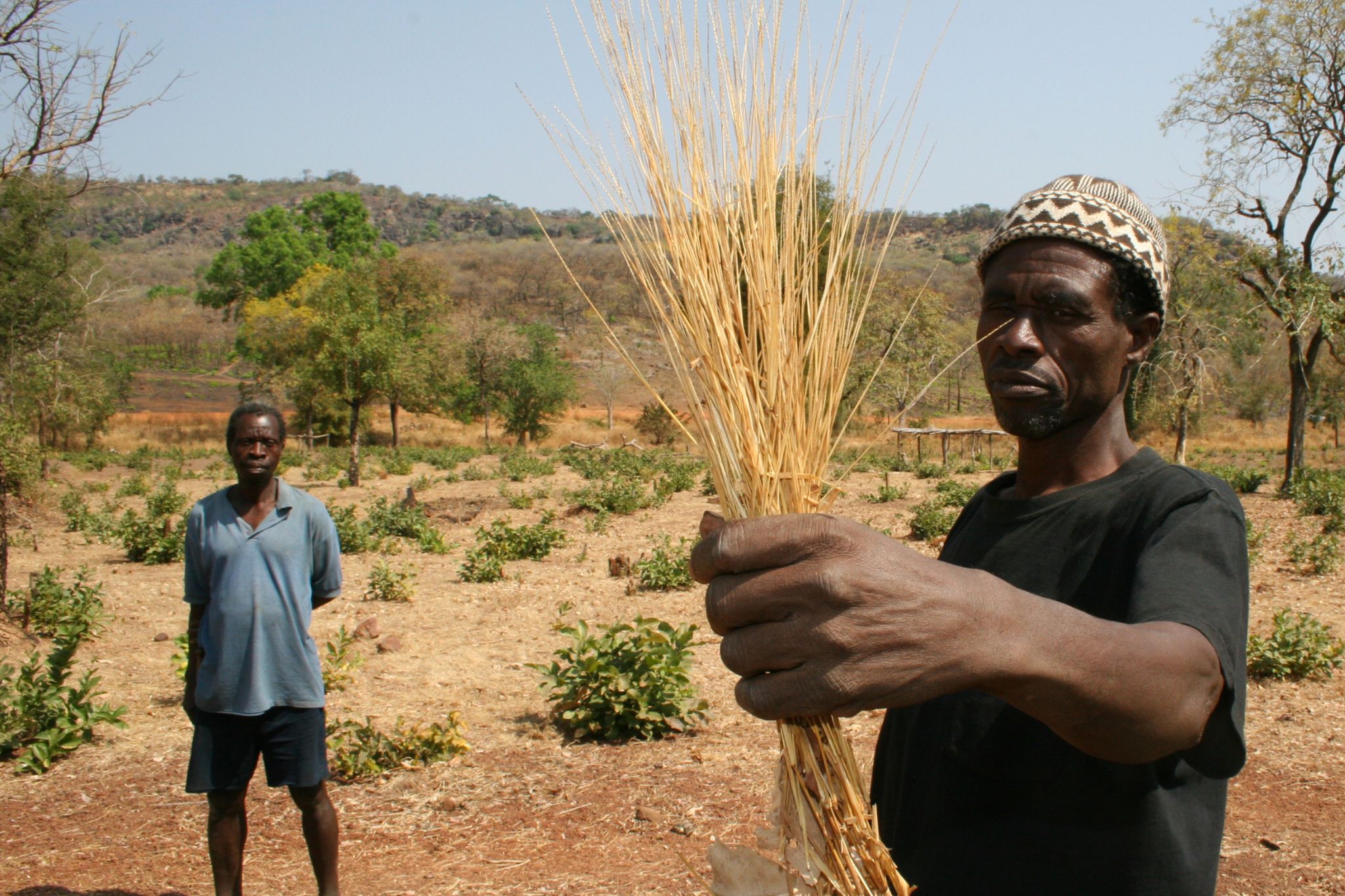 Men harvest the grain by uprooting the plant or cutting off the grain head with a homemade knife or sickle. Threshing the grain — separating the edible from inedible parts of the plant — is just as labor-intensive. It’s done by either beating or trampling over the dry straw.
